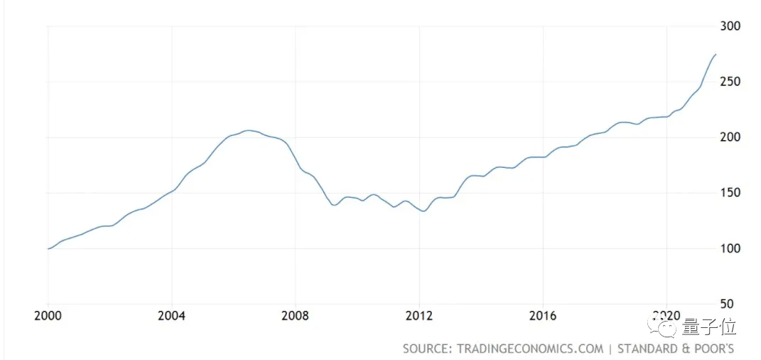 据Trading Economics数据显示,美国房价在2012年以后就呈稳定上升趋势,但涨幅还算平稳。