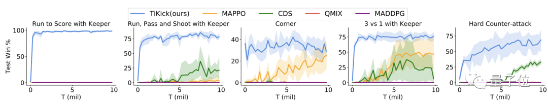 在多项国际赛事中夺得冠军则是指,TiKick在单智能体控制和多智能体控制上均取得了SOTA性能,并且还是首次实现同时操控十个球员完成整个足球游戏。