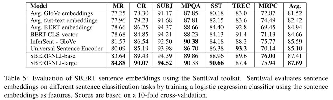 对此,文章中也做了解释:这主要是因为不同任务的配置不同。STS 任务使用 Cosine-Similarity 对句子向量进行评估,Cosine-Similarity 对所有维度平等处理;而 SentEval 使用逻辑回归分类器对句子向量分类,这就允许某些维度对分类结果有更高或更低的影响。同时,也可以发现 「SBERT 对句子表征本身也有一定的提升作用」,这应该算是个额外收获。