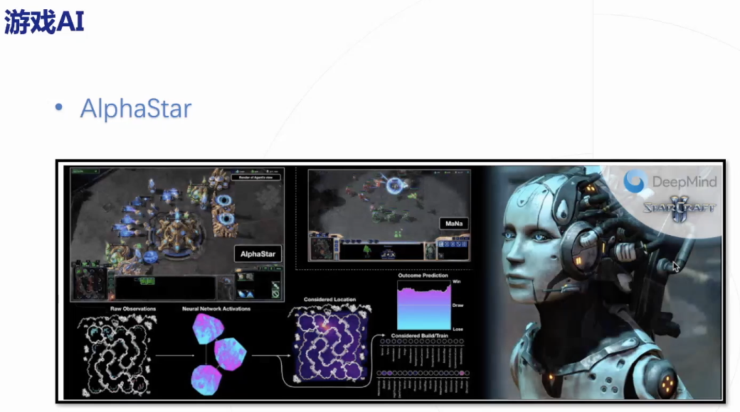 下面我用一个例子介绍游戏AI的设计流程,即如何打造一个游戏AI模型。这里我们介绍AlphaStar的星际争霸2的人工智能模型。之所以选择星际争霸2,是因为它本身操作和控制难度较高,同时它也有一款相当经典的游戏,玩家群体数量较大,热度高。Dota2本身是“技术战略”类的游戏,玩家有时需要同步操控上百个多种职业的士兵对象,所以其游戏难度呈现指数级上升。