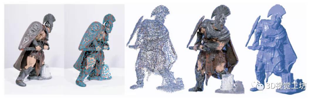 Multi-View Stereo(MVS)多视图立体匹配与三维重建的任务是:以已知内外参数的多幅图像(SfM的结果)为输入,重建出真实世界中物体/场景的三维模型。