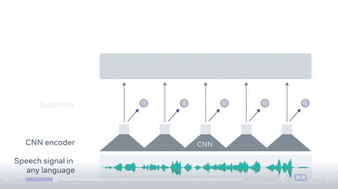 wav2vec 2.0与BERT类似,是通过预测音频mask部分的语音单元来训练的。它们的区别是,语音音频是一种连续的信号,不能轻易清晰地分割成单词或其他单位。