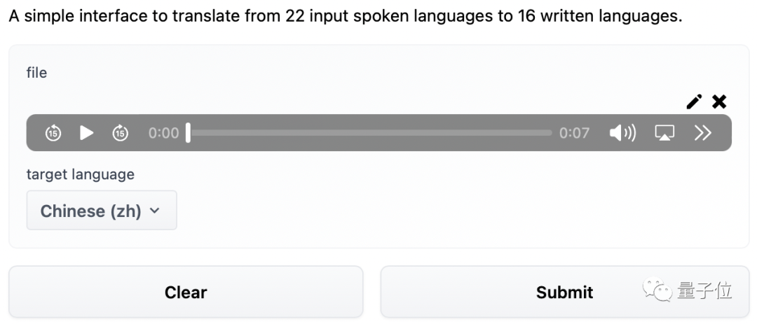 MetaAI在HuggingFace上发布了试用版语音直译模型,支持从22种语言转换到16种语言,我们先来试试它的英译中效果。