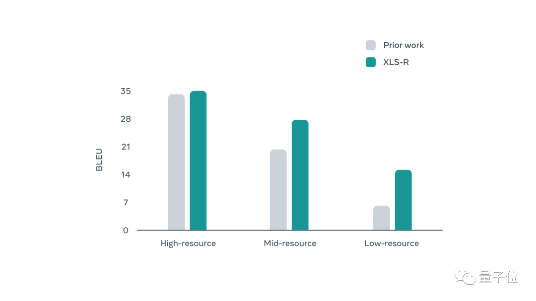 此外XLS-R也让低资源语言与英语之间的翻译大幅改进,例如从印度尼西亚语到英语的翻译,其中BLEU(双语互译质量评估)的准确性平均翻了一番。