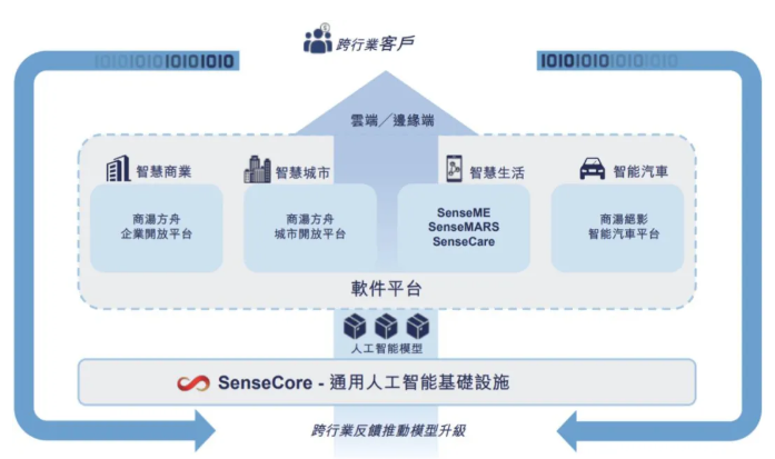 基于人工智能基础设施 SenseCore,商汤提供通用化的 AI-as-a-Service 能力,主要拥有四个方向的产品,分别是面向智慧商业场景的方舟企业开放平台、面向智慧城市的方舟城市开放平台、面向智慧生活的 SenseME、SenseMARS 及 SenseCare,以及面向智能汽车的 SenseAuto(商汤绝影智能汽车平台)。