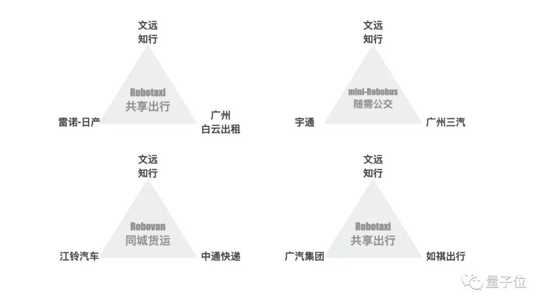 而且值得注意,这已是文远知行落地进程中的第4个铁三角。运用铁三角,文远知行完成了L4级自动驾驶的2个三大布局:
