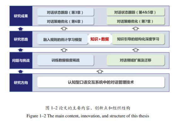 1、本论文的第一部分围绕对话状态跟踪任务中训练数据稀疏和对话 领域扩展两个核心挑战,基于 知识与数据双驱动的思想提出了两种新 型的对话状态跟踪方法。