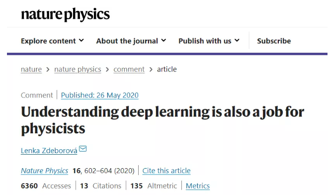 2010 年底以来,随着深度学习的兴起,关于深度神经网络令人惊讶的、不合理的良好性能和泛化能力的进一步问题已经出现。在最近的《Nature Physics》评论中,Lenka Zdeborová 呼吁重新努力以受物理学启发的方法来解决这些问题,并指出物理学家通过搜索可以捕捉问题本质的模型,来处理大量不同范围的实验中的观察结果的经验,忽略许多细节,并通过分析调查进行测试。