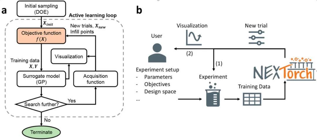本文将介绍美国特拉华大学的Dionisios G.Vlachos课题组近期发表在Journal of Chemical Information and Modeling上的一篇工作:NEXTorch: A Design and Bayesian Optimization Toolkit for Chemical Sciences and Engineering,即一个基于贝叶斯优化器来辅助实验科学的主动学习Python库,借此机会也会简述“主动学习”框架是如何助力实验科学的。