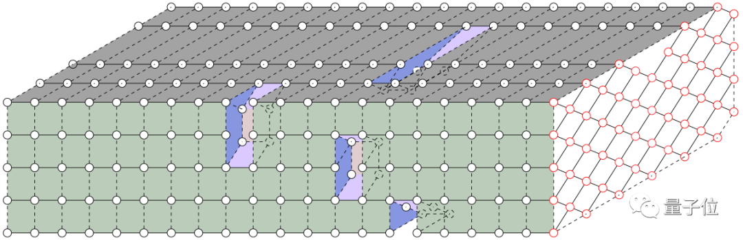 上图中,最左侧一层表示53个量子比特的初始状态,最右侧一层表示终止状态。新算法通过切断网络的一些连接来简化关系,从图像上看就像是在三维网络上“钻孔”。