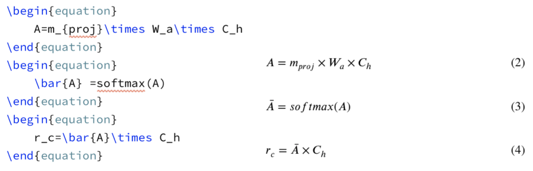公式中的 softmax,proj,enc 等,超过一个字母的变量或符号,要用正文字体,即写成 \textrm{softmax} 或 \textit{FFN}。很多函数有现成的符号,例如:\arg,\max,\sin,\tanh。 -