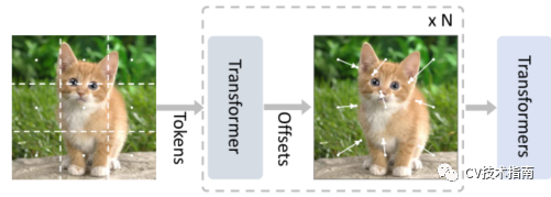 论文提出的模块不是从固定位置采样,而是以迭代的方式更新采样位置。如图所示,在每次迭代中,当前采样步骤的tokens被馈送到transformer编码层,并预测一组采样偏移量以更新下一步的采样位置。该机制利用transformer的能力来捕获全局信息,通过结合本地上下文和当前tokens的位置来估计对感兴趣区域的偏移量。这样,注意力就会像人类视觉一样,一步一步地集中到图像的可辨别区域。