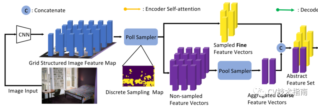 为了解决上述局限性,论文开发了一个可学习的轮询和池化(Poll and Pool, PnP)采样模块。它的目的是将图像特征图压缩成由精细特征向量和少量粗略特征向量组成的抽象特征集。