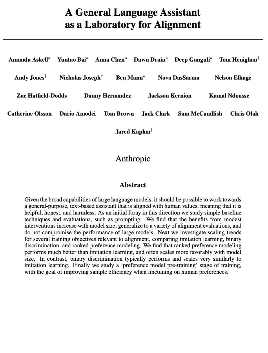 2、[CL] A General Language Assistant as a Laboratory for Alignment