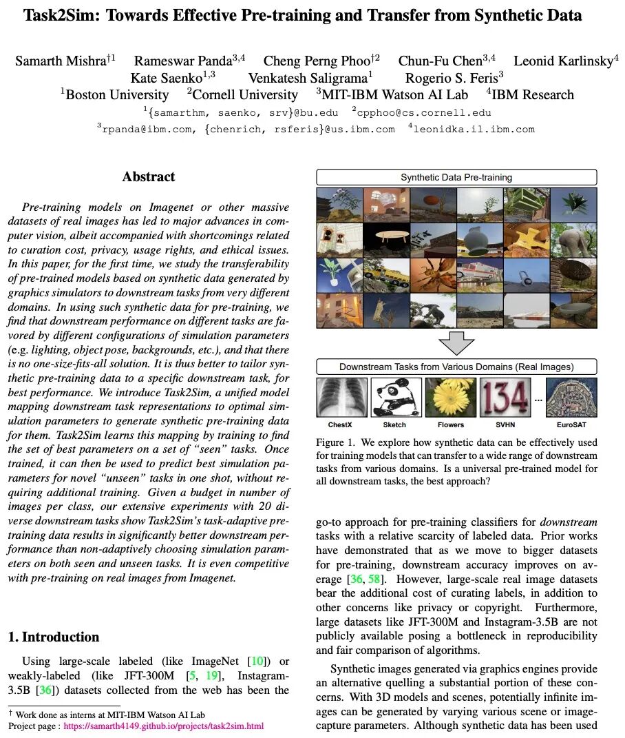 [CV] Task2Sim : Towards Effective Pre-training and Transfer from Synthetic Data