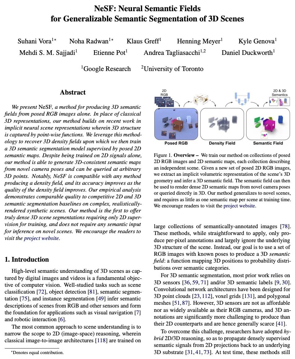 [CV] NeSF: Neural Semantic Fields for Generalizable Semantic Segmentation of 3D Scenes