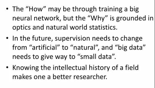 实际上,和计算机视觉一样,神经网络也有着悠久的历史,Alexnet 等模型的诞生也有其历史渊源。神经网络只是我们可以利用的工具之一,我们要做的是维持合适的概念框架,让各种工具发挥作用。