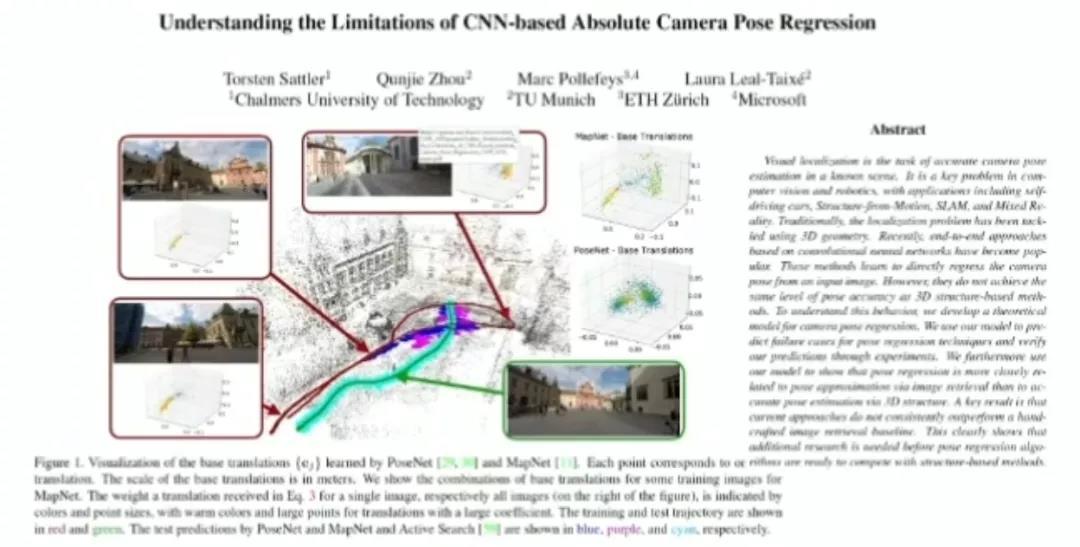 以视觉定位任务为例,一些基于深度学习的方法只是记住了图片出现的场景,在定位时进行猜测。如果查询并没有沿着路径,则回归的结果可能始终会被引导到出发点。该过程中并没有任何的 3D 推理,没有利用 3D 几何结构。