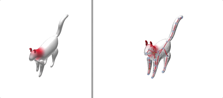 对比现有的很多自动生骨架建模方法,这一方法并不是在整个网格模型构建完成后,采用算法处理并提取骨架。