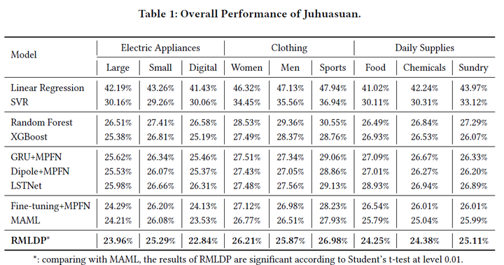 - 收集了两个大型电子商务平台的市场需求记录:聚划算和天天特卖。与基线方法相比,RMLDP的优越性能证明了该框架在离线和在线场景下的有效性。