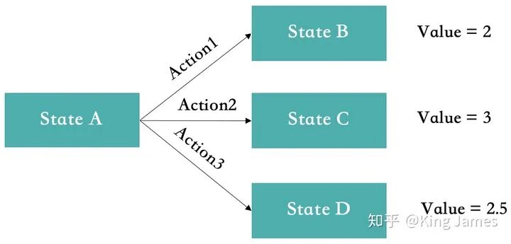 强调一点这里面的Value值,在强化学习训练开始时都是不知道的,我们一般都是设置为0。然后让Agent不断去尝试各类Action,不断与环境交互,不断获得Reward,然后根据我们计算Value的公式,不停地去更新Value,最终在训练N多轮以后,Value值会趋于一个稳定的数字,才能得出具体的State下,采取特定Action,对应的Value是多少
