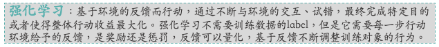 强化学习是一种机器学习的学习方式(四种主要的机器学习方式解释见上图)。