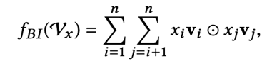 Bi-Interaction Pooling是NFM的核心部分,功能跟PNN中的Product Layer类似,都是实现向量相乘,详细内容可参考之前的文章:PNN。不过在细节处理上,NFM跟PNN以及FM有些不一样。BI层的公式如下: