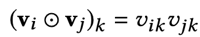 这里是两个向量对应元素的乘积(element-wise product of two vectors),而不是点积,点积之后是一个标量,而BI层的两个向量相乘之后依然是一个k维向量: