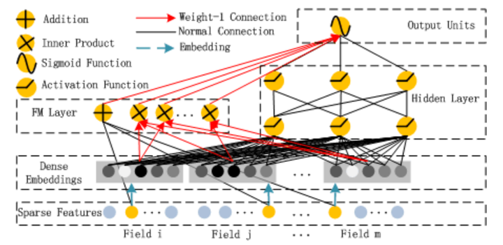 2. FM部分和DNN部分共享Embedding,可以更有效率地学习;