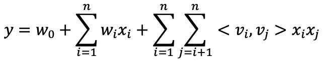其中vi是特征xi的隐向量,vj是xj的隐向量,<vi,vj>表示内积。
