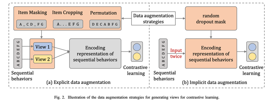 动机不多提了,很有意思的一点,这篇论文的名字也叫CLUE,与(8)相同,好像NLP里面也有这个名字,论文也是探索性质,指出PeterRec这种基于item level的训练方式容易破坏用户表征,或者是一种次优的表征,既然是用户表征就应该基于user level,对用户行为直接做比较学习,论文尝试了常见的显式数据提升方式和隐式的dropout方式,证实方法的有效性。
