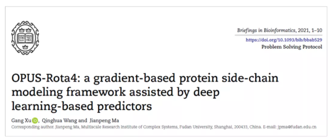 近日,我国科学家在该研究领域亦取得突破。复旦大学马剑鹏教授团队与上海人工智能实验室合作,以《OPUS-Rota4: 一个基于梯度和深度学习的蛋白质侧链建模框架》(“OPUS-Rota4: agradient-based protein side-chain modeling framework assisted by deeplearning-based predictors”)[1]为题在《生物信息学简报》(Briefings in Bioinformatics)上发表论文,展示了OPUS-Rota4蛋白质侧链预测算法,其对侧链结构的预测精度比AlphaFold2高出13%。