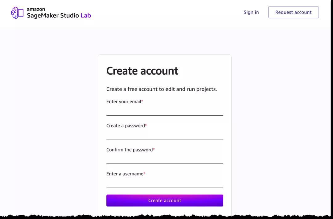 无需亚马逊云科技账号,登陆官方链接 studiolab.sagemaker.aws/requestAccount 填写邮箱及相关信息即可。