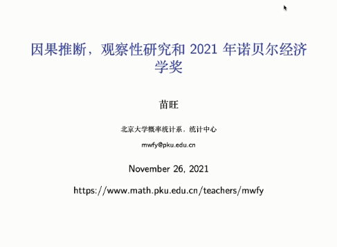 【专栏:前沿进展】因果推断是当下人工智能、机器学习领域中的热门话题之一。在 2021 年 11 月 26 日的青源 Talk 中,北京大学助理教授、青源会会员苗旺分享了题为「因果推断,观察性研究和 2021 年诺贝尔经济学奖」的报告。在本次报告中,苗旺老师首先介绍了 1989、2000、2021 三次诺贝尔经济学奖的背景,这三次诺奖得主的工作都与因果推理有着密切的关联。接着,苗旺老师回顾了统计学家对因果推理研究的贡献。在报告的第三部分中,苗旺老师讨论了以「混杂因素调整」为代表的观察性数据因果推断研究的最新进展。最后,苗旺老师展望了因果推断未来的发展方向。