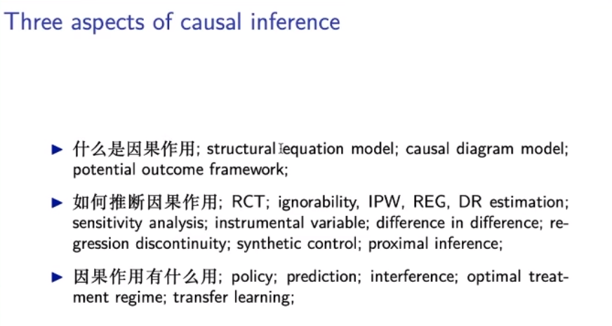 (2)如何推断因果作用:包括随机化试验、可忽略性、敏感性分析、断点回归、工具变量、合成对照、近端推断等方法;