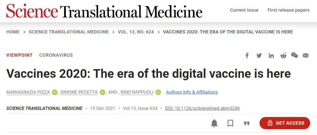 2021年12月15日,葛兰素史克的数位专家在Science旗下杂志Science Translational Medicine(2020年IF为17.956)发表文章,回顾了疫苗的开发历史,并展望了数字疫苗开发的未来。