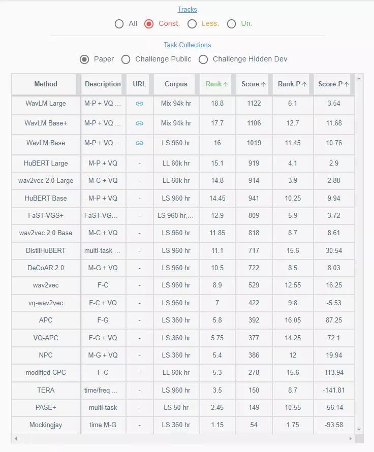 图2:WavLM 在 SUPERB Leaderboard 上的表現