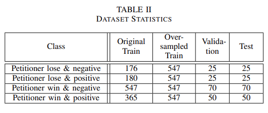通过为每个判决添加每个法庭案件的判决,研究团队扩展了数据集。根据胜诉方和判决对胜诉方的影响,将判决分为四类。一个句子可以分为以下几类: