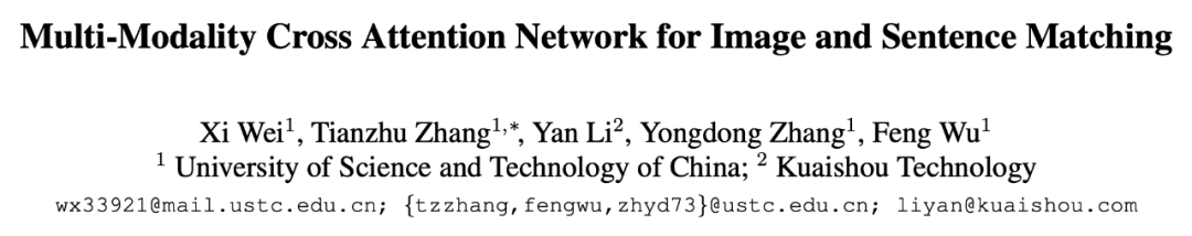 本文分享论文『Multi-Modality Cross Attention Network for Image and Sentence Matching』,由中科大&快手联合提出多模态交叉注意力,《MMCA》,促进图像-文本多模态匹配!