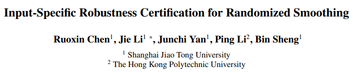 论文题目:Input-Specific Robustness Certification for Randomized Smoothing