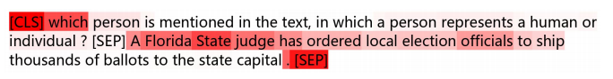 首先,论文提到了之前使用 BERT-MRC 的方式做序列标注问题,虽然相比传统的 BERT-CRF 方法有一定的效果提升,但是仍然有两个缺陷。其中一个就是前言中提到的效率问题 。另外一个则是 BERT-MRC 并没有充分利用标签的知识信息 。前言中提到,BERT-MRC 引入了标签的先验知识,然而 LEAR 论文中通过对 attention 部分进行可视化分析,发现模型可能没怎么用到 query 的信息。如图 1 所示,实体 judge 对应的高分 attention 并非如预期一样集中在问题的核心部分,而是分散在了一些无关的信息中(如 [CLS] 等 token)。