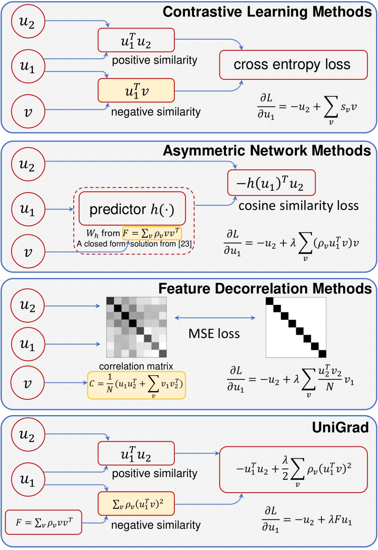 图 1 三类自监督方法与 UniGrad 的对比