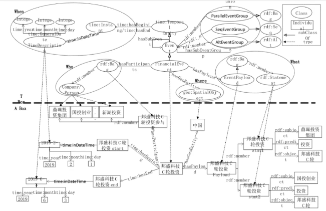 同时,现有知识图谱以静态的实体为核心,世间万物瞬息变化,现实世界中不断在发生着各类事件,动态的事件为社会实践提供参考并承载更深层次的信息。例如,投资者要参考公司以往发生的事件来评估公司的投资风险;股价的多次涨跌可能有相同规律性。因此,对时序事件的通用化表示也是金融领域的重要需求。