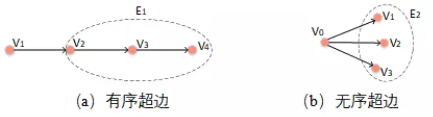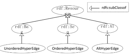 超图中的超边是属于该边的普通任意数目节点的聚合,借鉴与RDF中容器的表示方法,根据超边内节点特性,将超边分为无序超边、有序超边和选择超边三类,分别基于rdf中的相应容器进行定义,如图1。