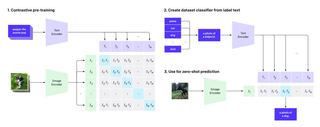 CLIP的机制非常简单。使用可以从网络上大量获取的大量图像以及与之相关的文本来预训练CLIP模型中相应的图像和文本编码器。如果文本和图像内容匹配,模型将给出高相似度,否则将给出低相似度。