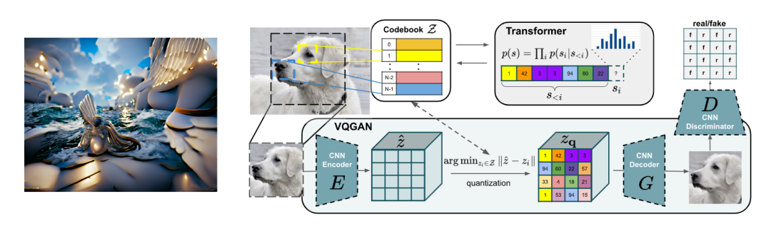 对于这种到离散标记序列的转换,通常使用 VQ-VAE,一种将潜在表达式绑定到离散标记的自解码器 (autoencoder),或者 dVAE (也被称为离散变分自编码器)。这种机制广泛应用于图像生成模型,如 VQGAN、DALL·E 、CogView 、NÜWA,以及视频生成模型 VideoGPT。在音乐领域,Jukebox 它结合了离散化和 transformer 直接从音频生成音乐。