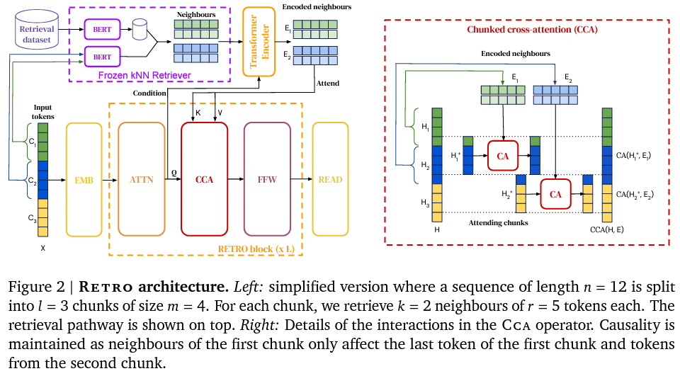 近日,大型语言模型 RETRO [9]发布。该模型通过搜索技术改进语言模型,基于一个 2 万亿 token 组成的数据库进行搜索,达到了近乎 GPT-3 的性能。这些模型的优点是在不增加参数数量的情况下提高了语言模型的性能,并且可以在之后不断添加或替换搜索数据库。