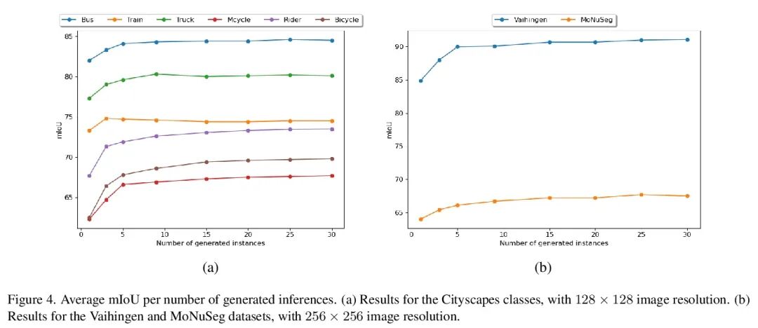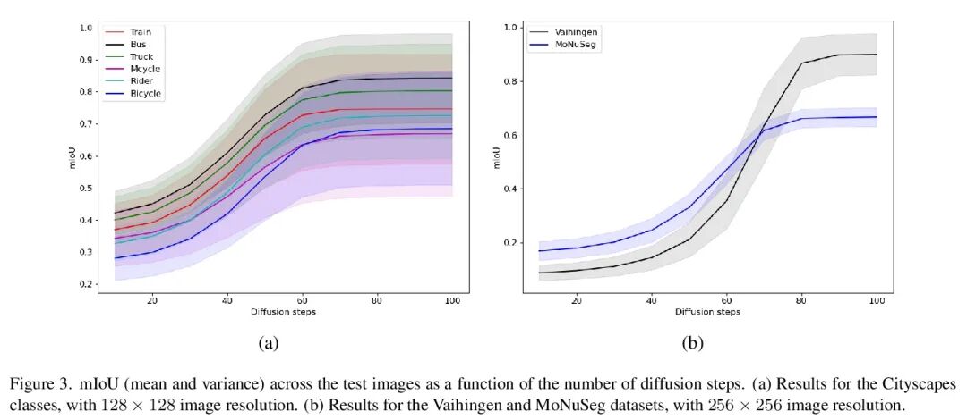 SegDiff: 基于扩散概率模型的图像分割。扩散概率方法被用于最先进的图像生成。本文提出一种扩展此类模型的方法,用于执行图像分割。该方法是端到端的学习,不依赖预训练的骨干。输入图像中的信息和当前估计的分割图中的信息通过两个编码器的输出相加进行合并。额外的编码层和解码器用扩散模型迭代细化分割图。由于扩散模型是概率性的,被多次应用,其结果合并成最终的分割图。新方法在Cityscapes验证集、Vaihingen建筑分割基准和MoNuSeg数据集上获得了最先进的结果。