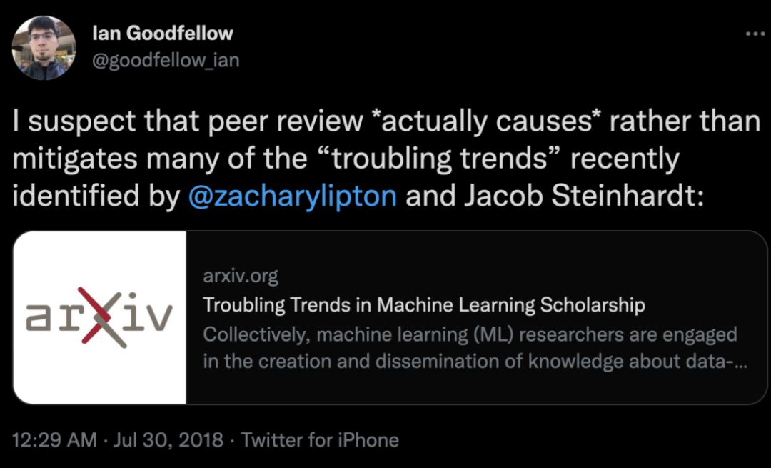 人工智能专家Ian Goodfellow在Twitter上抱怨同行评审(peer review)