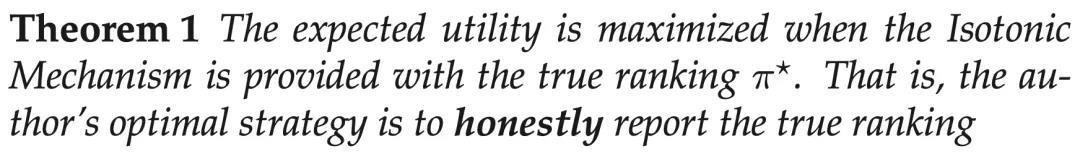 1. 投稿人的最佳策略是如实报告他/她的论文原始分数的真实排序;甚至在投稿人不能完全确定所有真实分数排序时,报告所知道的所有真实信息也是其最优选择。